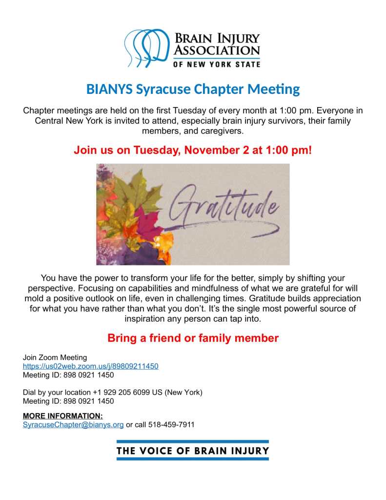 Gratitude is the Topic at November 2 BIANYS Meeting